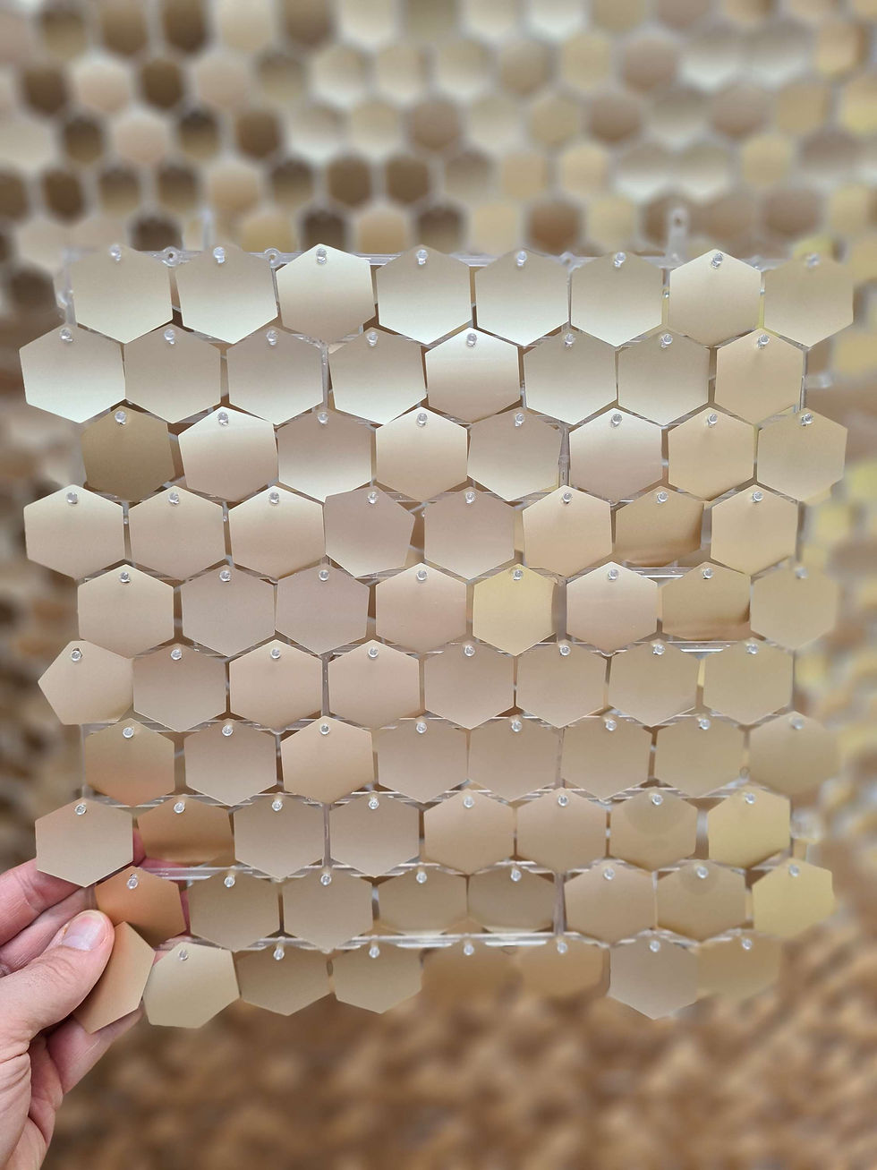 All our hexagon shimmer walls are UK stock and ready to ship with delivery in 1 to 3 days. The easy to use clip together panels are perfect for any feature wall and can be easily applied to any surface to create a luxury effect feature wall. Perfectly formed to clip together with ease they are the ultimate compliment for any event supplier.